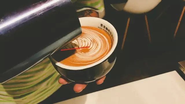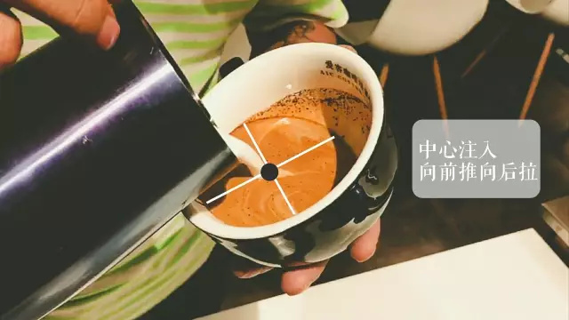 1.傾斜咖啡杯,對準濃縮咖啡液面中央