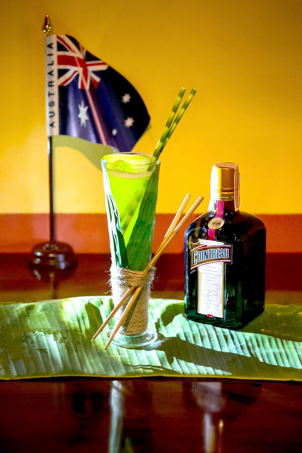 搖勻,濾入司令杯。用綠咖喱蘇打水加滿。**
