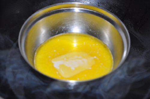 將安佳黃油切丁,和牛奶放入一個容器中,隔水將安佳黃油融化。