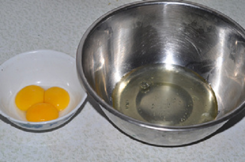 將蛋白和蛋黃分開,放蛋白的容器要無水無油。