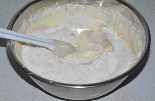 用軟刮將面粉和蛋糊翻拌均勻。