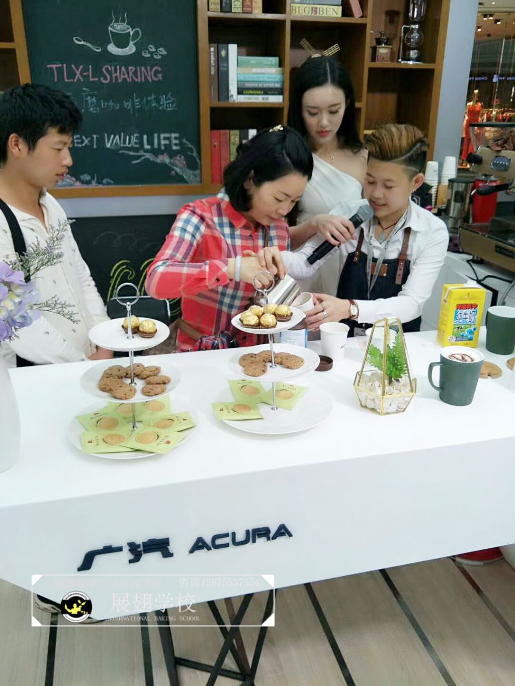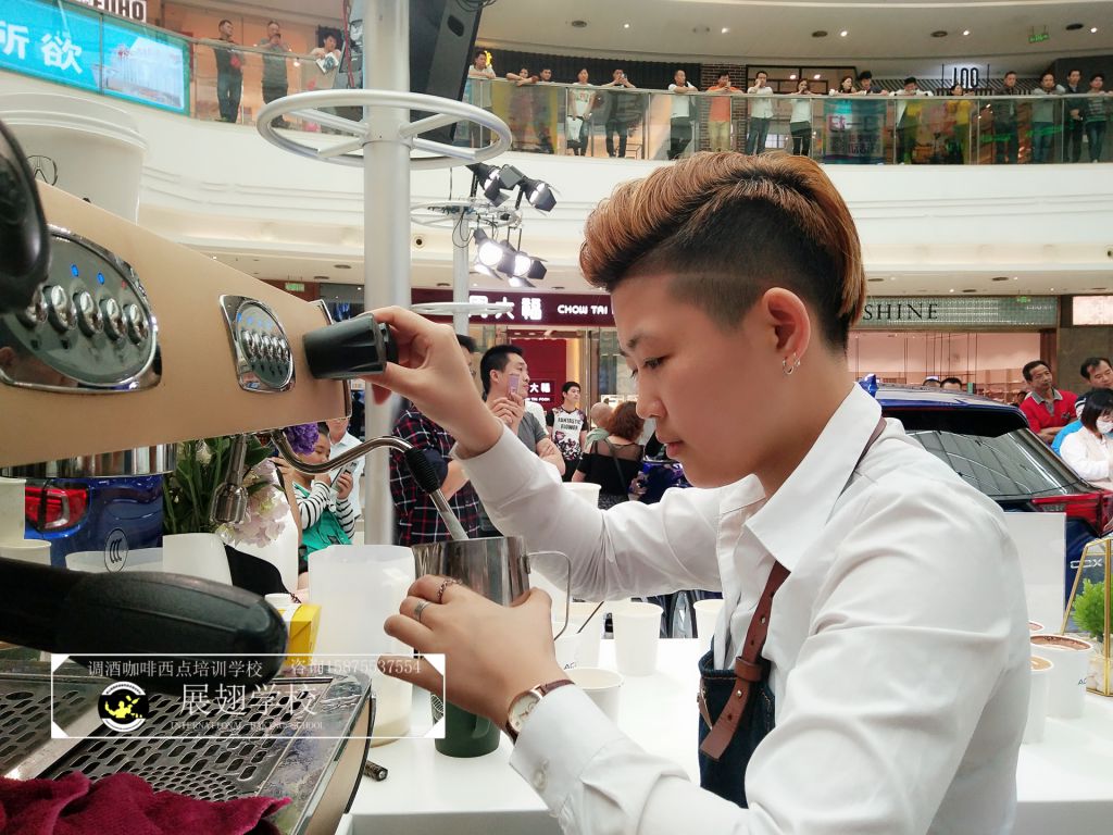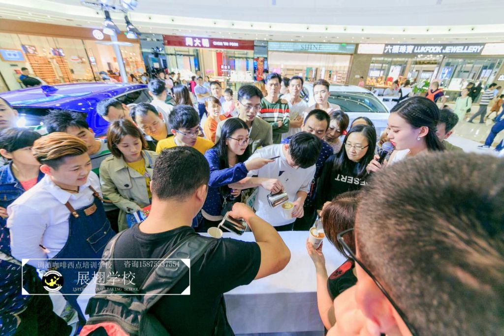 2018年16日~18日,佛山展翅調酒咖啡西點培訓學校的咖啡師參加了廣汽謳歌汽展暖場咖啡拉花活動,不僅現場為觀眾調制咖啡,更在現場教學如何拉花。現場的觀眾朋友不僅能喝到咖啡師制作的美味咖啡,還能體驗一次咖啡拉花的樂趣,用流動的奶泡融合到濃縮咖啡中,并拉出精美好看的圖案。