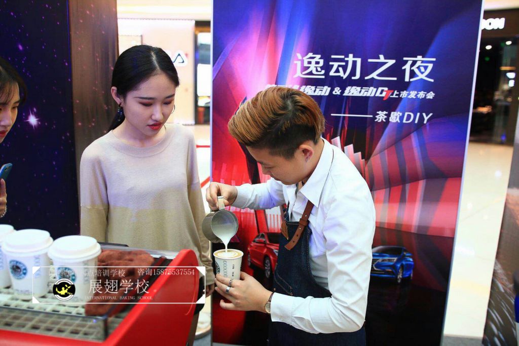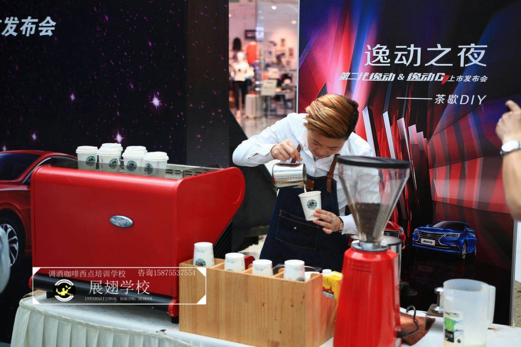 2018年3月27日,佛山展翅調(diào)酒咖啡西點(diǎn)培訓(xùn)學(xué)校的咖啡學(xué)員受邀參加逸動(dòng)之夜廣東站發(fā)布會(huì)。在現(xiàn)場(chǎng)的茶歇DIY環(huán)節(jié),我們的咖啡師給現(xiàn)場(chǎng)的觀眾沖調(diào)咖啡飲料,并現(xiàn)場(chǎng)教學(xué)如何拉花,讓感興趣的朋友也可以體驗(yàn)到咖啡的魅力和樂(lè)趣。