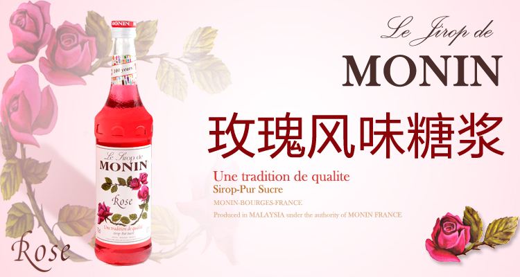 1.      Monin的玫瑰糖漿是明星產(chǎn)品,毫不吝嗇的使用上等玫瑰精油。關(guān)于取舍的話大家看看自己的配方是不是需要用到糖漿。取得度相對來說比較簡單,風(fēng)味也比較柔和好把控。