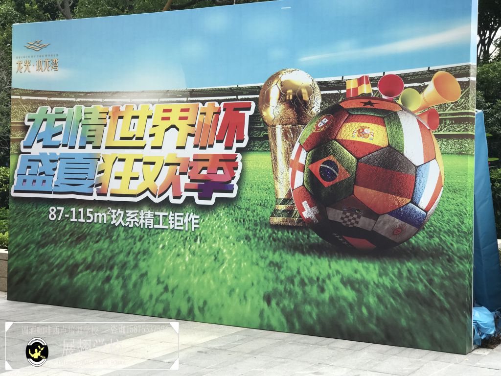 2018年6月30日,惠陽龍光.玖龍灣樓盤的“龍情世界杯-盛夏狂歡季”是正在進行時,現場氣氛活躍而歡快,佛山展翅咖啡調酒西點培訓學校的咖啡學員們也第一時間趕到現場,讓咖啡的溫馨和友情隨著濃郁的香氣彌散全場,也給現場增添了一抹別樣新奇的色彩!