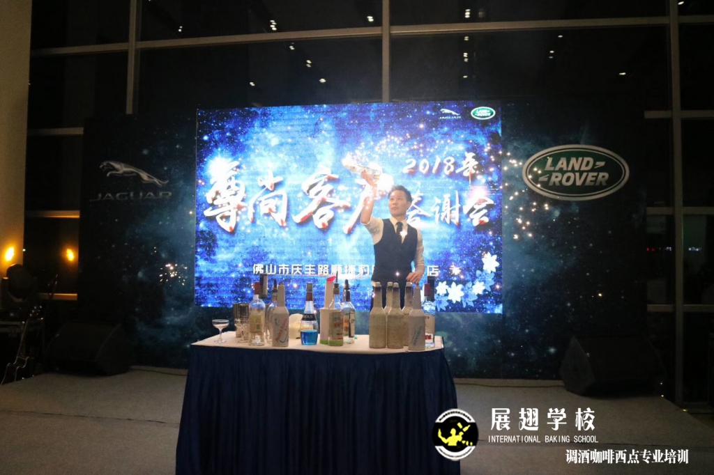 2018年12月30日,順徳慶豐路順捷豹路虎4S店客戶答謝會邀請了佛山展翅調酒咖啡西點培訓學校的學員為現場的嘉賓提供了專業花式調酒節目及雞尾酒,在每場活動中調制雞尾酒及實踐給學員帶來積累及更多的學習